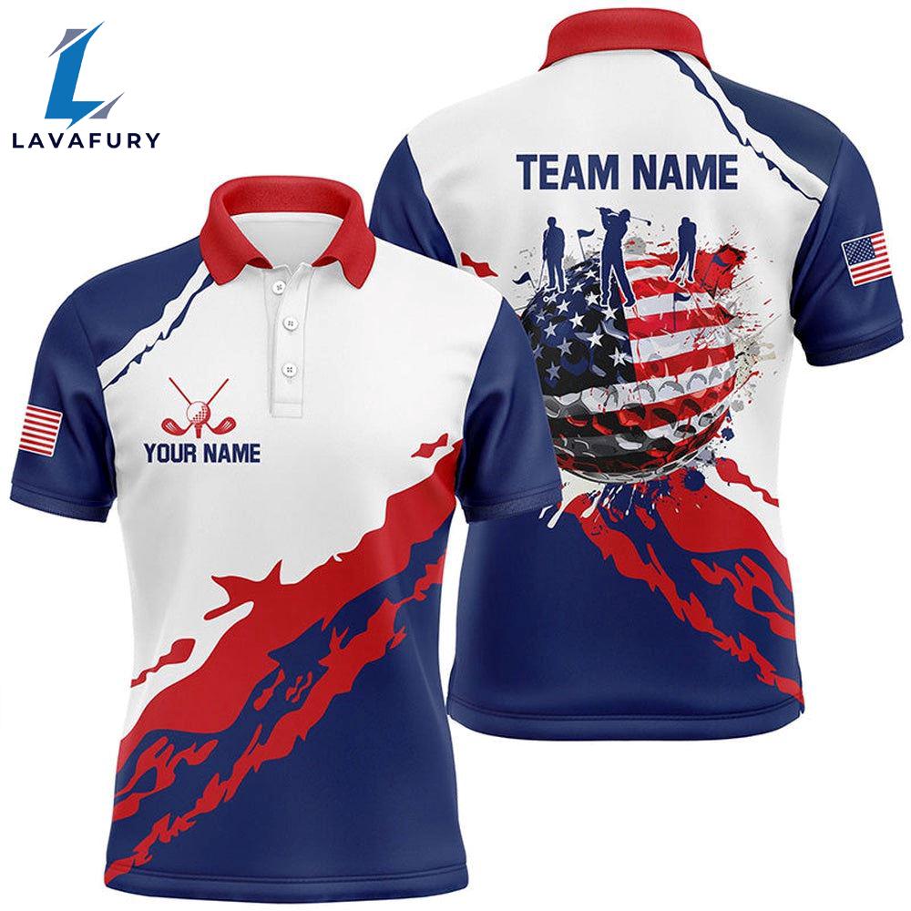 Red, White And Blue Mens Golf Polo Shirts Custom American Flag Patriotic Golf Clothing Gift Summer