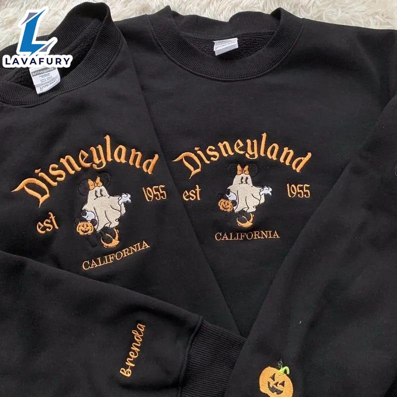 Retro Spooky Halloween Embroidered Shirt, Embroidered Cartoon Ghost Mouse Sweatshirt An embroidered sweatshirt is a cozy and stylish piece of clothing, typically made from soft cotton or fleece. It features intricate embroidered designs, adding a personal and artistic touch. These designs can range from simple logos or text to more detailed patterns, making each sweatshirt unique. Perfect for casual wear, embroidered sweatshirts combine comfort with a creative flair, suitable for everyday use or as a standout fashion statement.