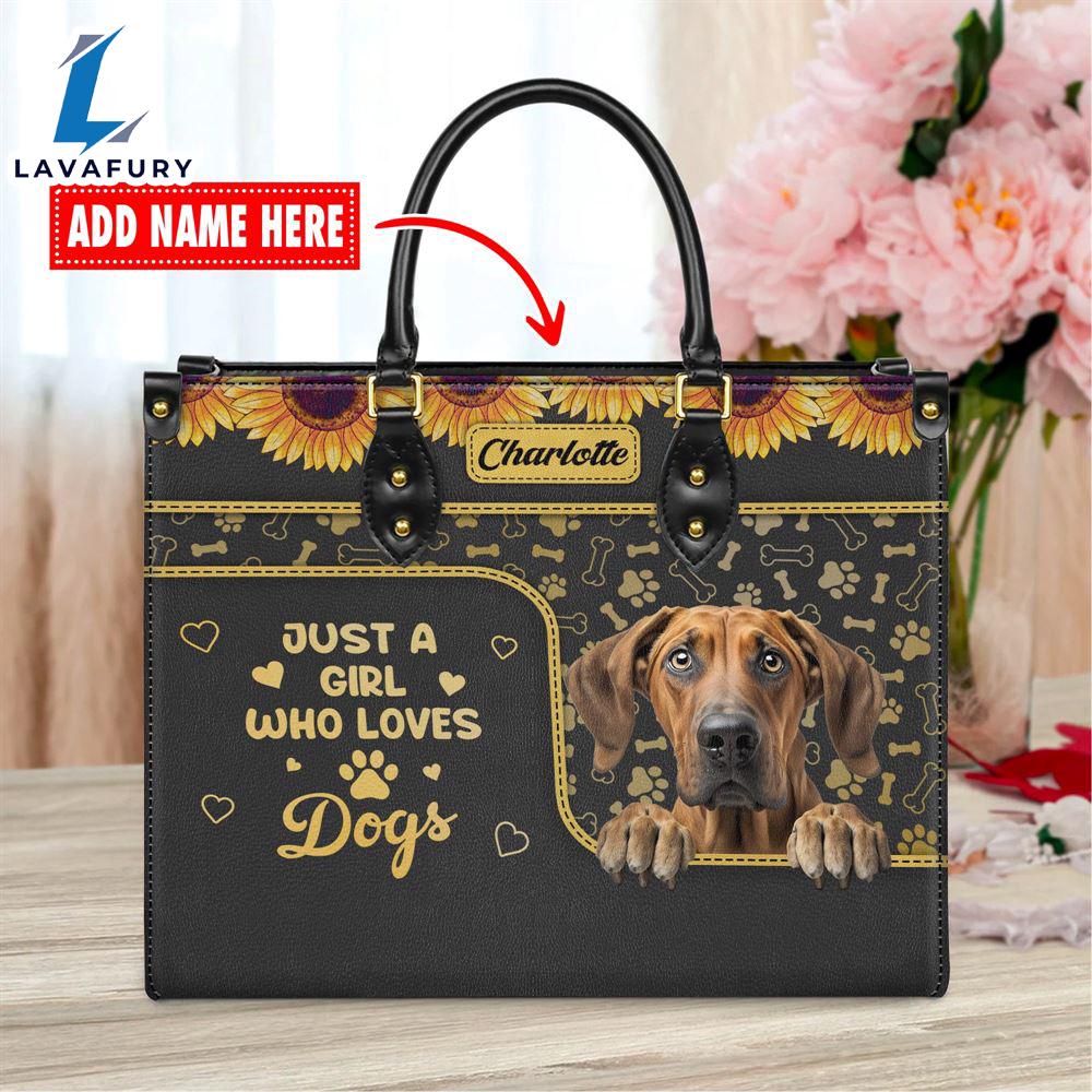 Rhodesian Ridgeback Dog Just A Girl Who Loves Dogs Leather Handbag Love Your Pet