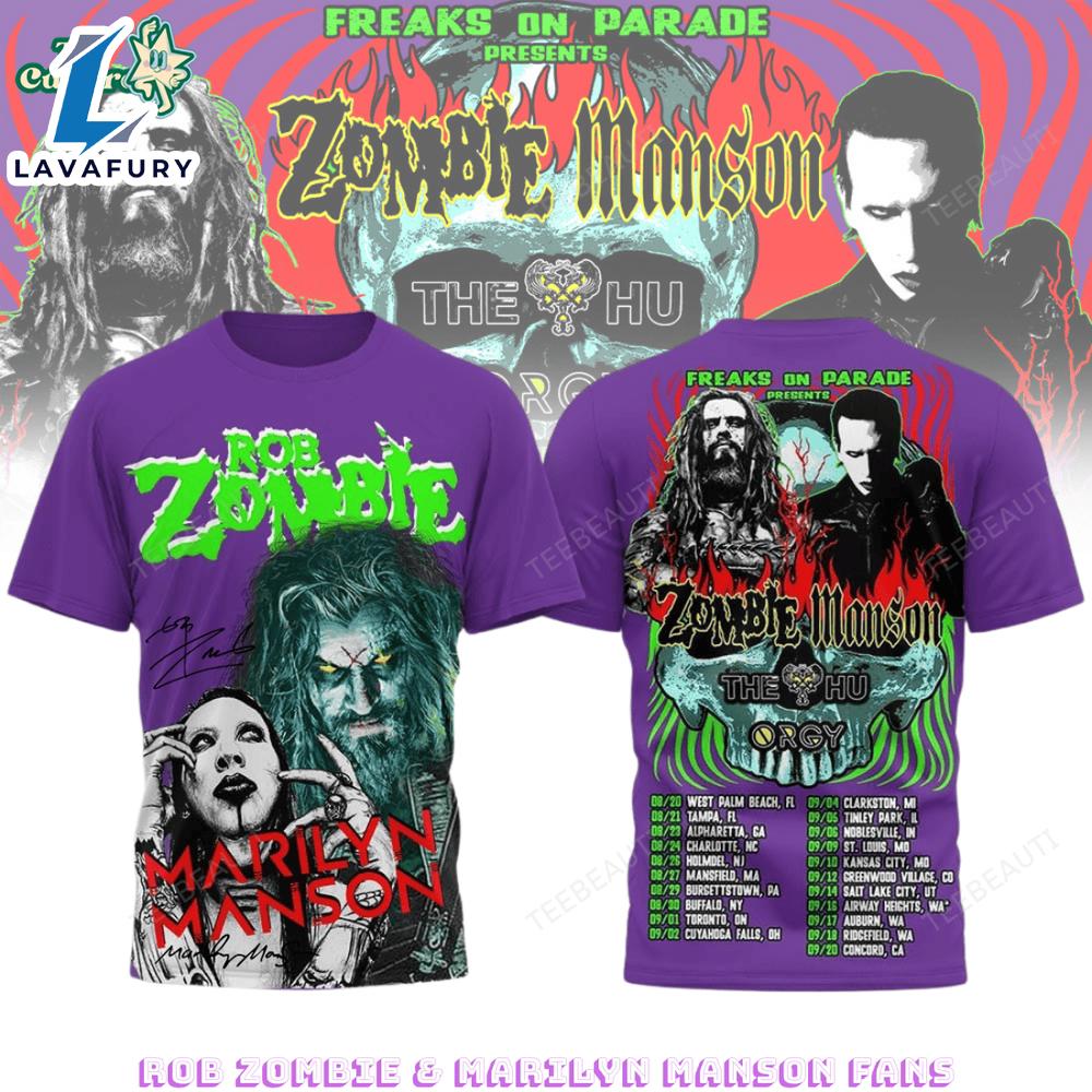 Product details: Rob Zombie & Marilyn Manson “Freaks on Parade” tour Lover 3D Shirt For Man And Women