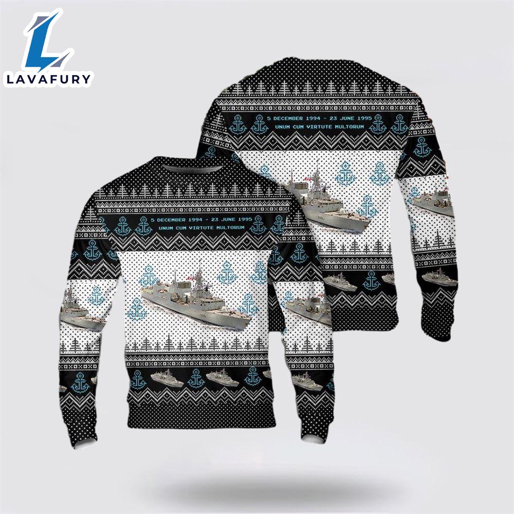 Photos Of Royal Canadian Navy HMCS Winnipeg FFH 338 Christmas AOP Sweater Veteran Christmas Sweater