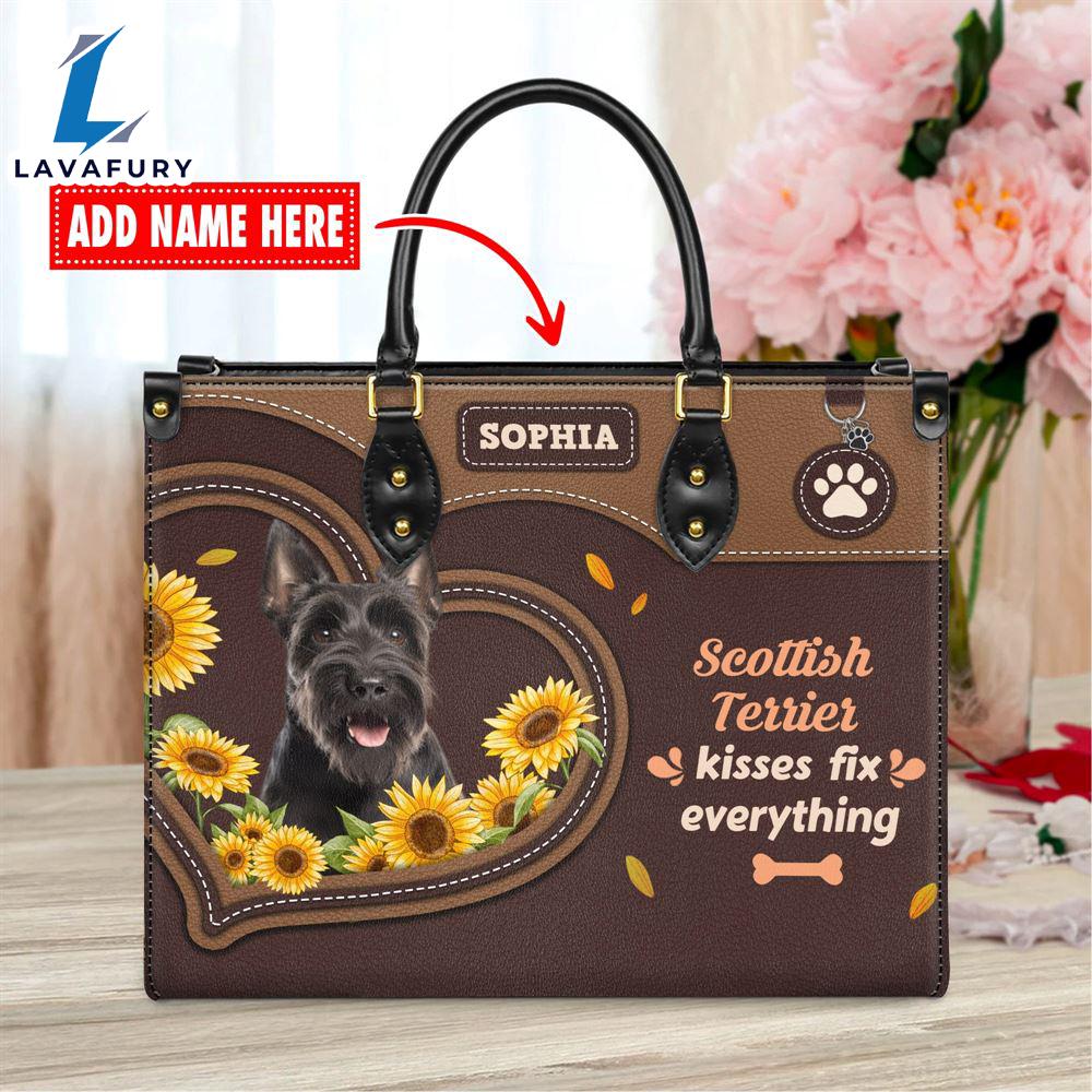 Scottish Terrier Dog Kisses Fix Everything Leather Handbag Love Your Pet