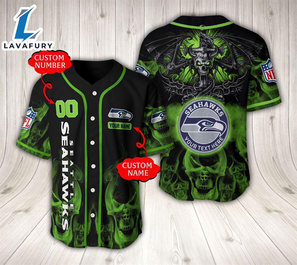 Seattle Seahawks NFL Baseball Jersey Custom Name And Number – Gift For Halloween Stay stylish on and off the field with this premium Baseball Jersey. Crafted from breathable, high-quality fabric, it offers comfort and durability for everyday wear or game day excitement. The classic button-up design and bold team logo make it a must-have for any fan. Perfect for showing off your team pride while staying cool and comfortable!