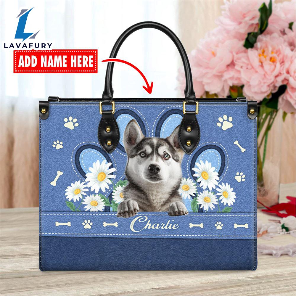 Photos Of Siberian Husky Dog Lover Leather Bag With Daisy Flowers Love Your Pet