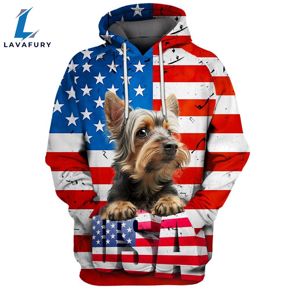 Silky Terrier Dog 3D Face Graphic Premium America Flag Hoodie For Lover Dogs The 3D shirt features an innovative design that combines cutting-edge technology with style. Its three-dimensional patterns create a dynamic and eye-catching look, making it stand out in any wardrobe. Made from high-quality, flexible fabric, this shirt ensures comfort and durability while allowing for a visually striking effect that plays with light and shadow.
