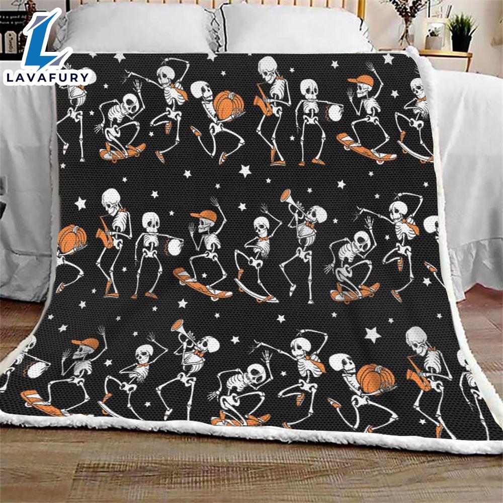 Skeletons With Pumpkins Halloween Sofa Fleece Throw Blanket Halloween Gifts Gift Xmas