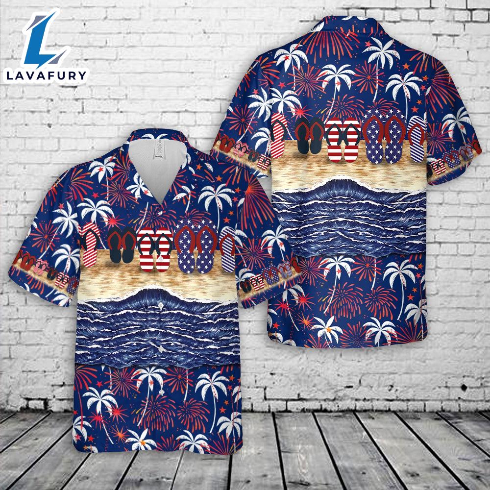 Slippers, 4th Of July Hawaiian Shirt 4TH Of July Experience the essence of island life with the Hawaiian Shirt, a vibrant blend of style and comfort. This shirt features lively, tropical prints that evoke the carefree spirit of a beach getaway. Crafted from lightweight, breathable fabric, it offers a relaxed fit and exceptional comfort, perfect for warm weather. The classic button-down design and short sleeves provide a laid-back yet polished look, making it ideal for casual outings, beach days, or summer gatherings. Infuse your wardrobe with a touch of tropical flair and effortless charm with this essential Hawaiian Shirt.