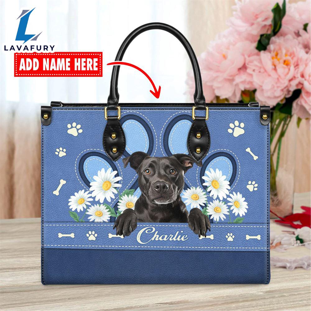 Photos Of Staffordshire Bull Terrier Dog Lover Leather Bag With Daisy Flowers Love Your Pet