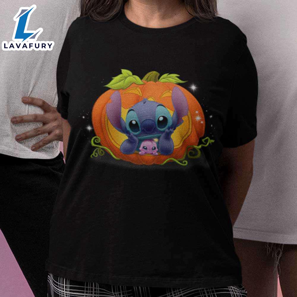 Photos Of Stitch and Boogoo Pumpkin Halloween T-Shirt Disney Gift Valentine Day