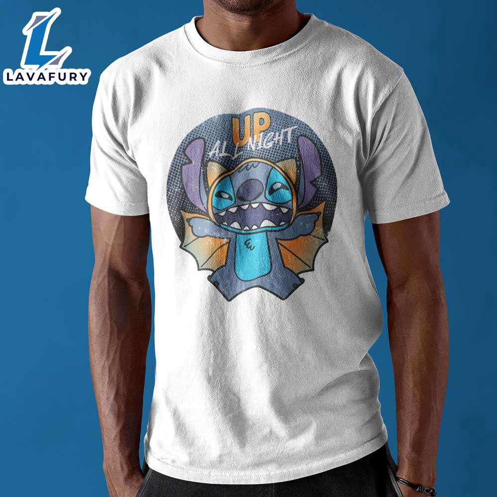 Product details: Stitch Bat Costume Up All Night Halloween T-Shirt Disney Gift Valentine Day