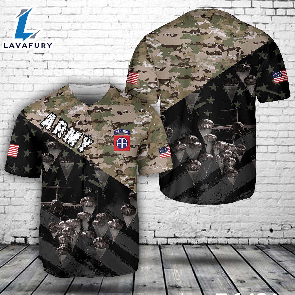 US Army Paratroopers With The 82nd Airborne Division Parachute Baseball Jersey 1 4TH Of July Stay stylish on and off the field with this premium Baseball Jersey. Crafted from breathable, high-quality fabric, it offers comfort and durability for everyday wear or game day excitement. The classic button-up design and bold team logo make it a must-have for any fan. Perfect for showing off your team pride while staying cool and comfortable!