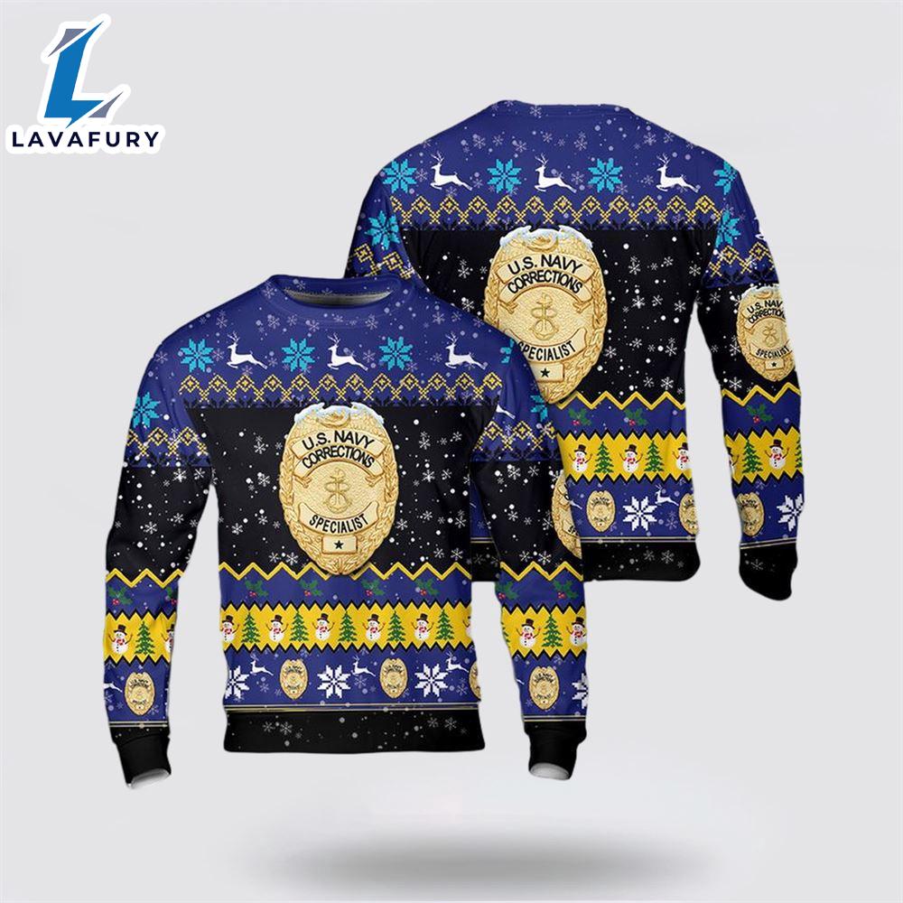 Product Details US Navy Corrections Specialist Badge Christmas AOP Sweater Veteran Christmas Sweater