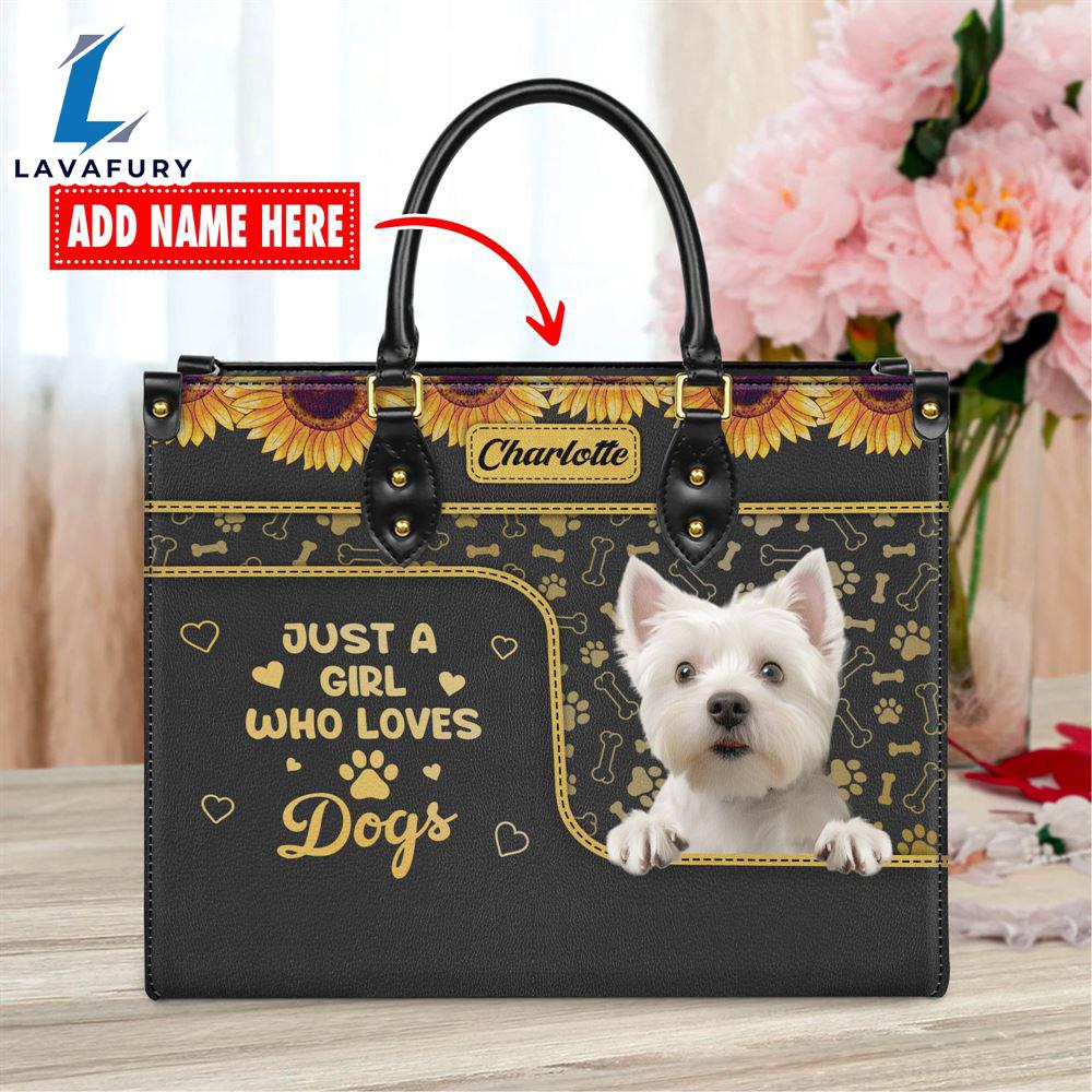 Product Details West Highland White Terrier Dog Just A Girl Who Loves Dogs Leather Handbag Love Your Pet
