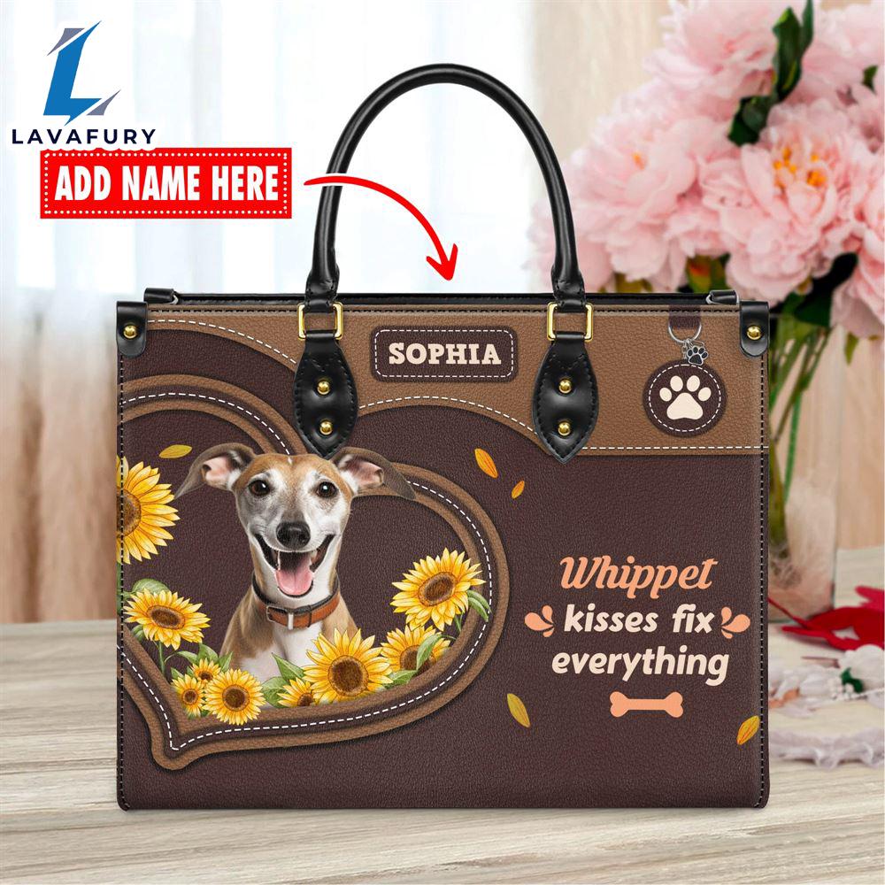 Whippet Dog Kisses Fix Everything Leather Handbag Love Your Pet