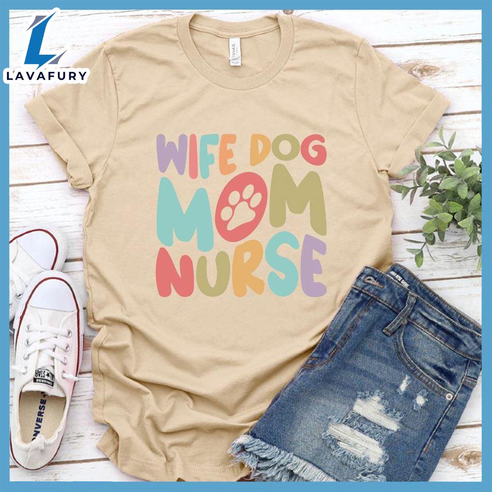 Wife Dog Mom Nurse Colored Print T-Shirt Gift For Mom